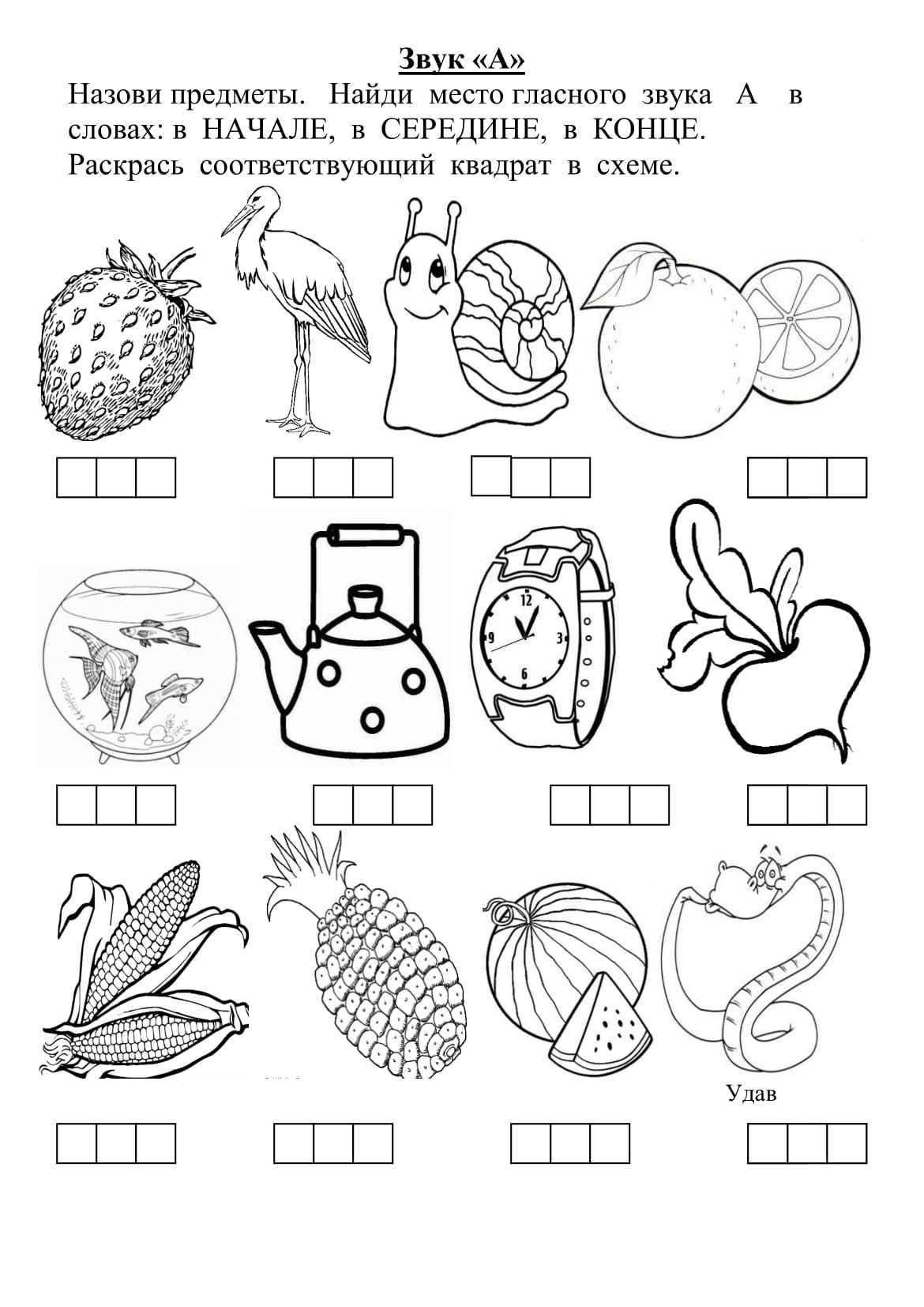 Развитие звуко-буквенного анализа, поиск буквы А в словах