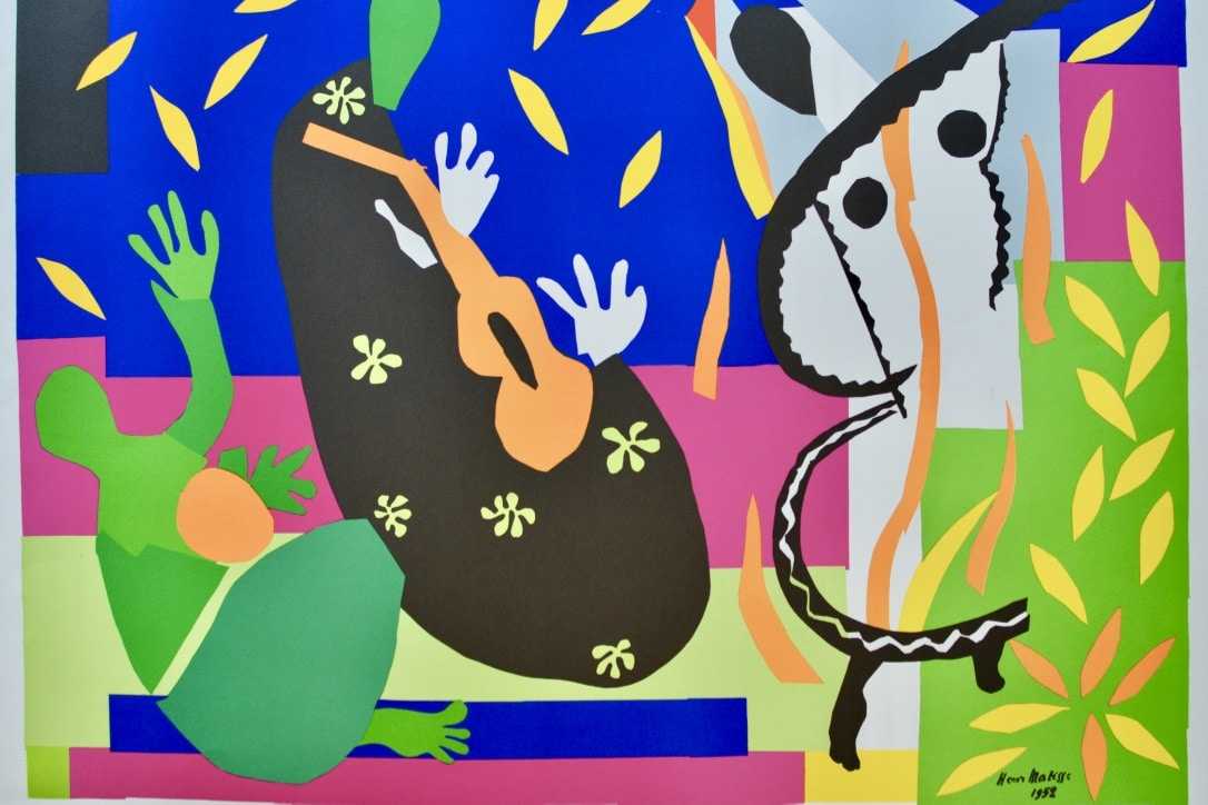 В ход пошли ножницы и бумага, раскрашенная гуашью. Вырезая абстрактные фигуры животных, людей, растений, Матисс создавал из них композицию и оформлял в виде коллажей. Произведения отличались своим минимализмом и лаконичностью, что вызывало споры. Вырезанные птицы, растения, рыбки и условные формы имели детскую произвольность, но когда они оказывались внутри единой композиции, все недостатки становились преимуществом: они добавляли динамики, усиливали форму.