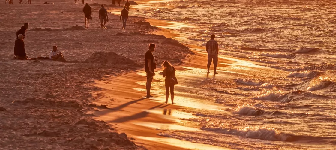 Если на июнь приходятся все дожди и холодная погода, то август — солнечный и тёплый. В бархатный сезон до середины сентября посетители нежатся на «сковородках» — открытых песчаных пляжах, защищённых от ветра. По берегу распределены пансионаты и санатории. Самый крупный — «Янтарный берег». Туристы посещают это место даже в несезон. Менее посещаемые санатории находятся в Зеленоградске и Светлогорске.