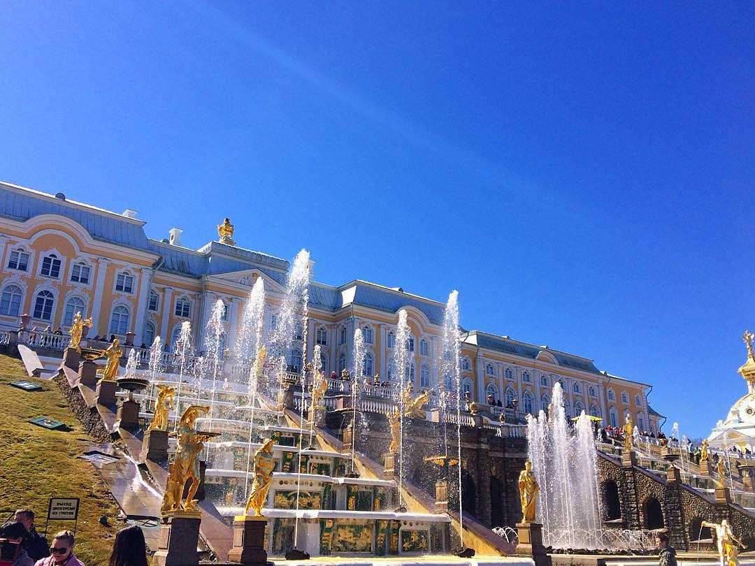 Большой Петергофский дворец — по желанию Елизаветы Петровны Растрелли в 1745-1755 гг. перестроил. Он добавил еще один этаж, расширил центральный объем и добавил к нему боковые галереи, которые завершались Корпусом под гербом и Церковным корпусом.