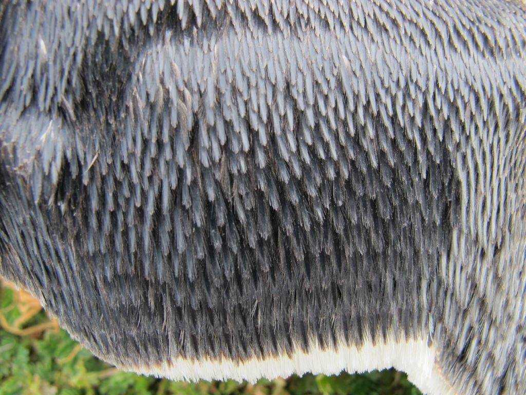 Раз в год пингвин линяет: новые перья растут с разной скоростью, выталкивая старое перо, поэтому часто птица в период линьки имеет неопрятный клочковатый вид.
