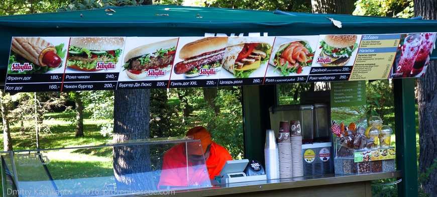 Еще желательно иметь с собой запас пищи и воды. Как в пустыне. В нижнем парке, конечно, есть где перекусить, но цены там — ресторанные. К тому же, совершенно непонятно, чем тут можно накормить ребенка.