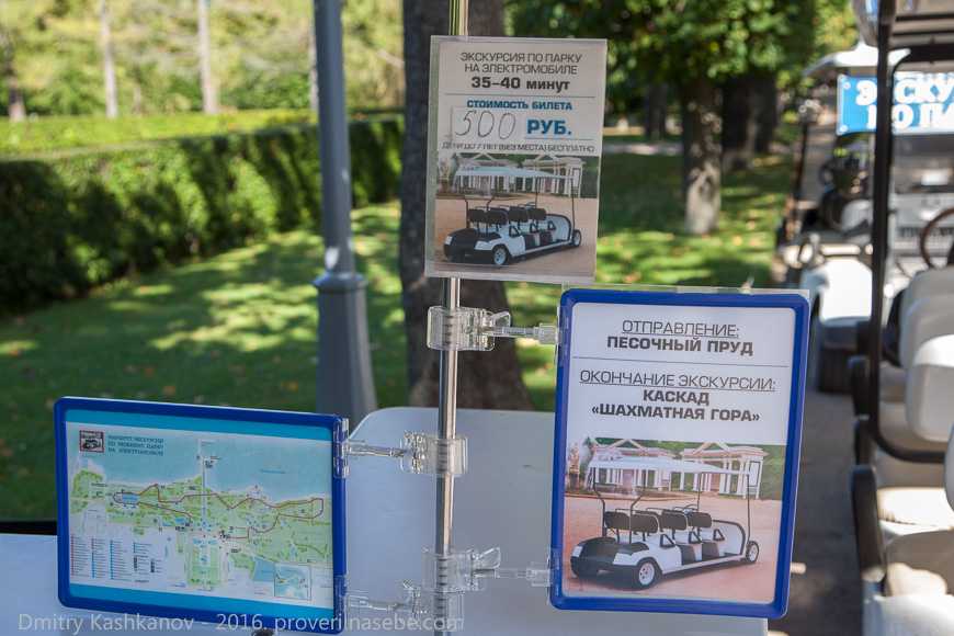 Имейте в виду, что в сезон, да еще и в выходные, стоимость билета подскакивает до 900 рублей за человека. Зато вас провезут по всему парку, вы увидите самые интересные места, а приятный голос из динамика будет все это время рассказывать интересные сведения. Как раз те, что вы услышали бы от экскурсовода, если бы купили экскурсию у Гостиного двора. Правда, сделать фотографии во время такой поездки будет весьма сложно.