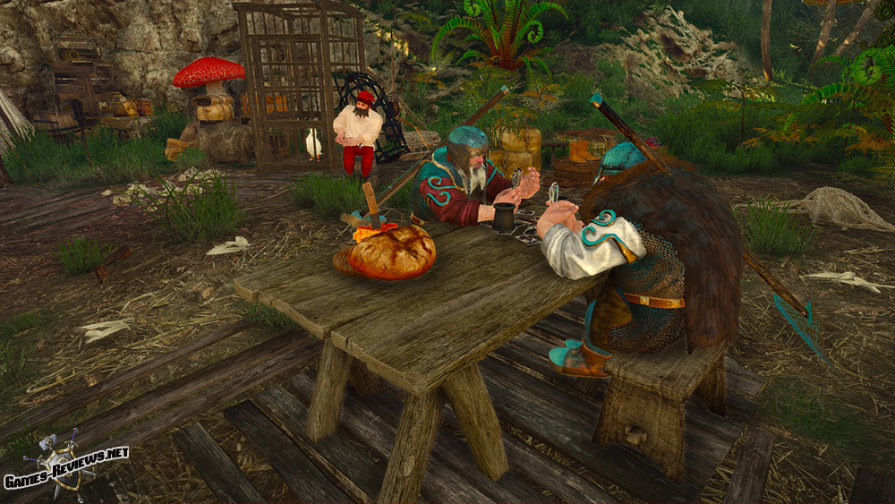 Квестовый маркер укажет Геральту путь к домику, порог которого усыпан гусиными перьями. Ведьмак сделает вывод, что здесь произошла драка, закончившаяся похищением Бальбины. Думаю, вы уже знаете, что нужно делать — пройти по следам, попутно отбившись от группы фей. Перья приведут нас прямиком к лагерю злоумышленников — Румцайса и двух его головорезом. Возможно, вы помните, что упоминания о Румцайсе уже встречались Белому Волку: сначала придворная гувернантка описывала «чешского Робина Гуда» как необычайно галантного мужчину в своём дневнике, потом Страшный Серый Волк клялся, что больше никогда не будет пить с бородатым разбойником. И всё же, при всех его положительных качествах, описанных Вацлавом Чтвртеком в детской сказке Приключения разбойника Румцайса (чеш. Rumcajs), аномалии не обошли его стороной и внесли некоторые… корректировки в характер гнома. Вместе с товарищами, он выкрал Бальбину с целью обогатиться за счёт её золотых яиц. К счастью для гусыни и несчастью для гномов, ведьмаку придётся разрушить зарождающийся бизнес силой; возможности воззвать к рассудку Румцайса мирным путём не получится. Отперев клетку ключом, взятым с трупа Румцайса, Геральт настолько обрадует Бальбину, что в благодарность та снесёт спасителю золотое яйцо. Технически, яйцо относится к категории «Прочее», но на самом деле располагается в «Еда и напитки». На первый взгляд оно кажется бесполезным, однако не торопитесь продавать подарок Бальбины девочке со спичками. Если поместить его в слот активных предметов и слопать, то ведьмак получит одно очко навыков. На поздних стадиях игры, когда прокачка персонажа становится занятием муторным и затратным по времени, оно точно не будет лишним.