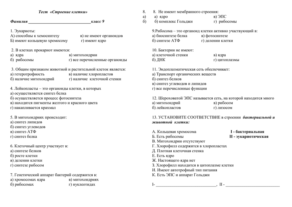 | б) | Ядро находится внутри ядерной оболочки, окруженной цитоплазмой. | ||