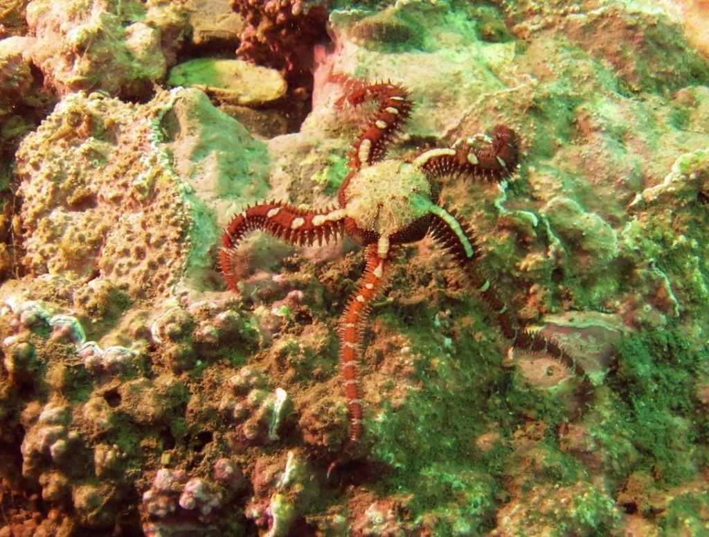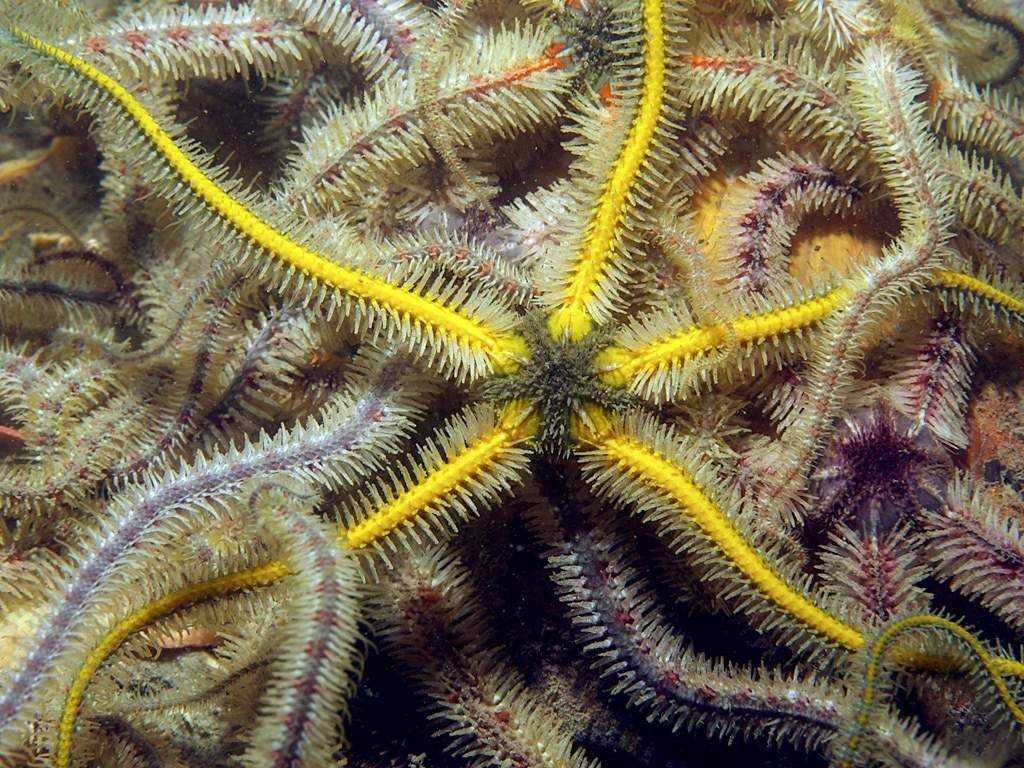 Обычно их пять, но у некоторых видов число может достигать десяти лучей. Они состоят из множества позвонков, скрепленных между собой мышечными волокнами, с помощью которых «руки» приходят в движение.