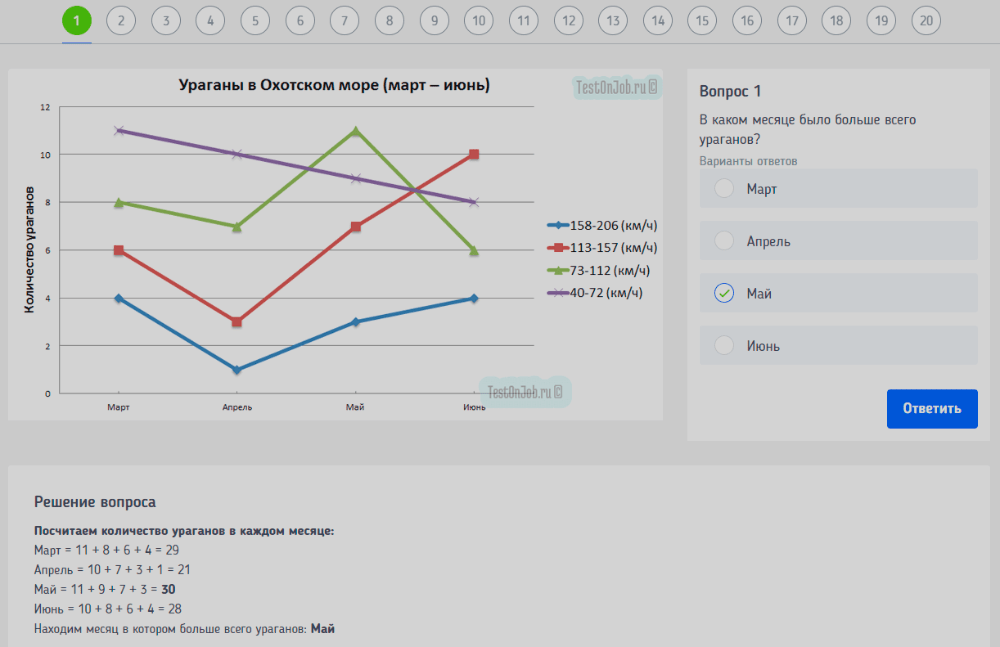Испытание состоит из 15-20 вопросов с иллюстрациями и нескольких вариантов ответов.